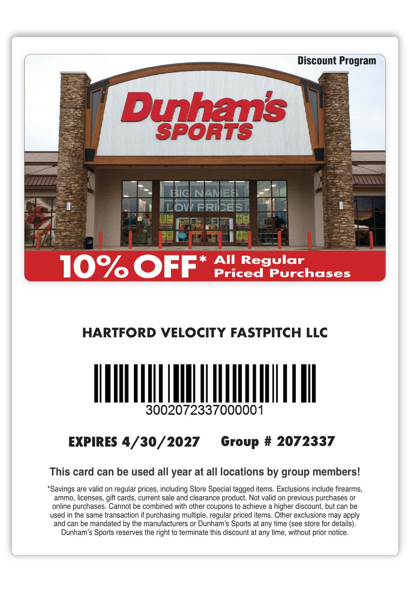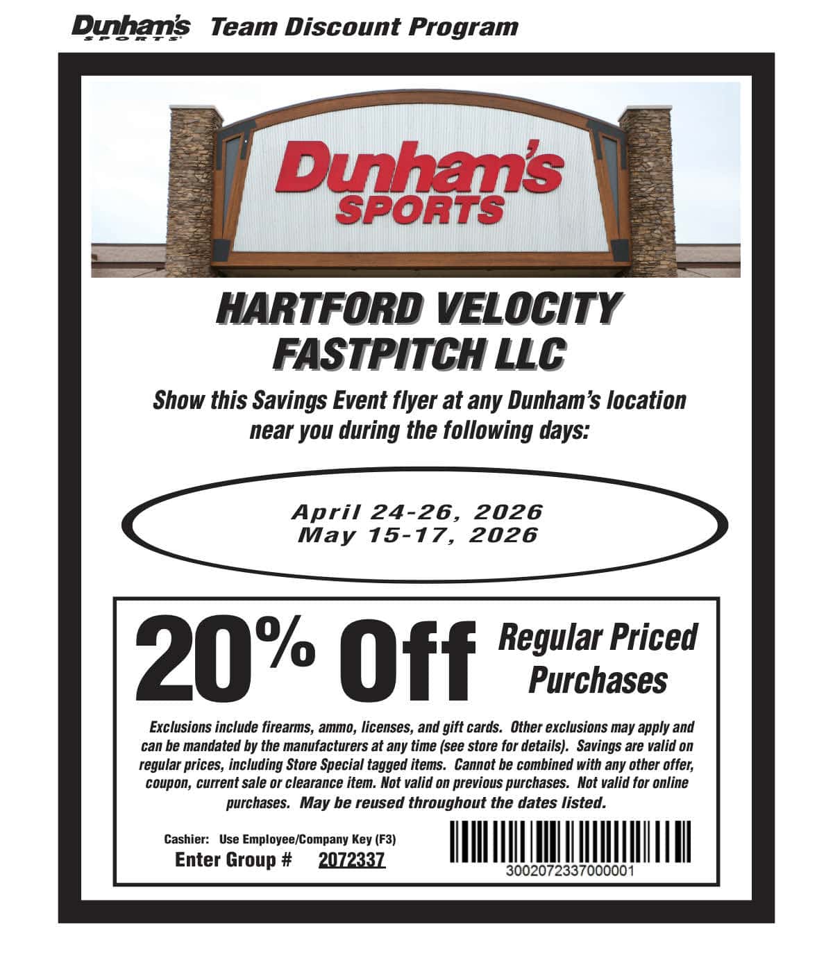 Dunham's Sports Team Discount Program